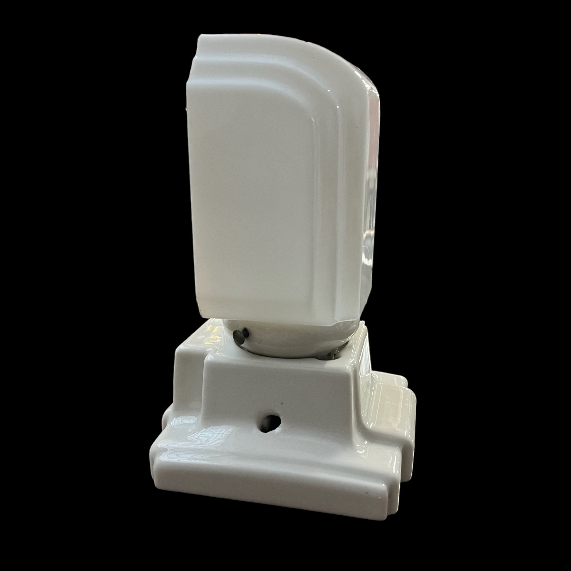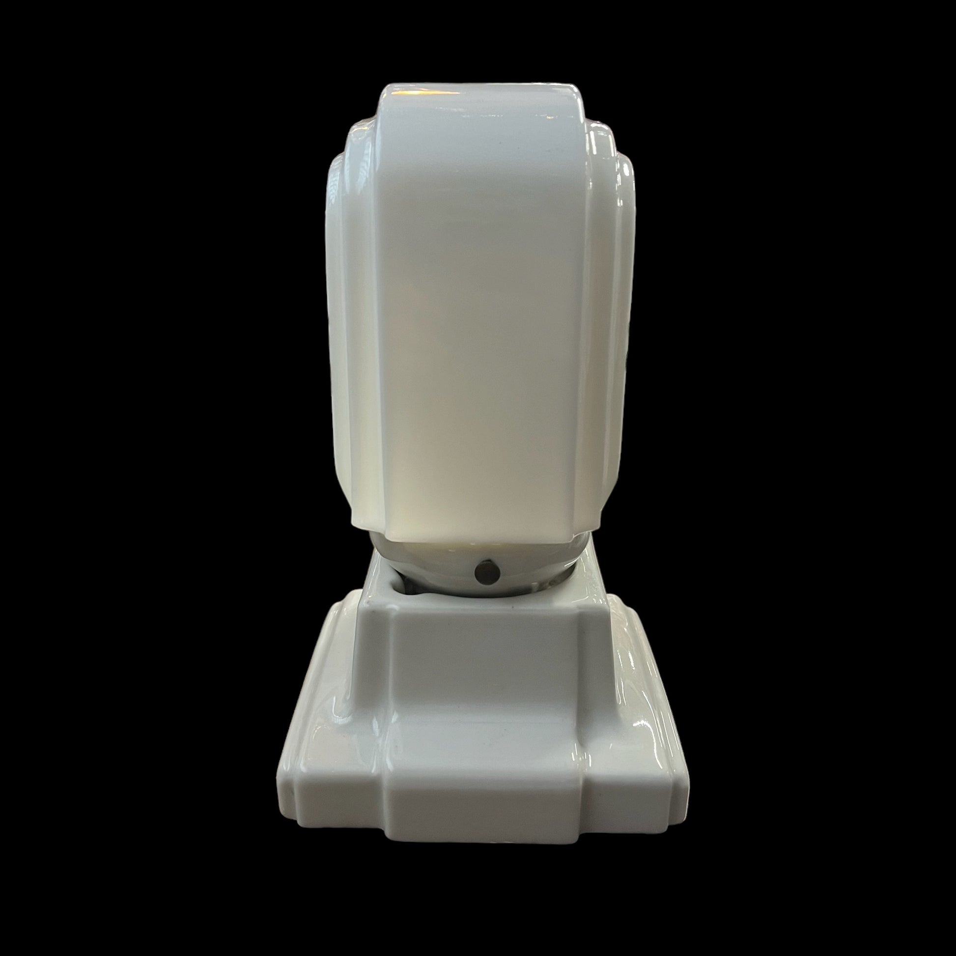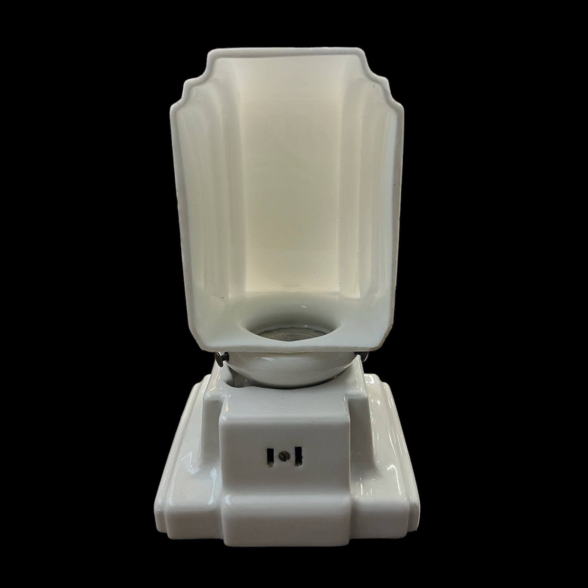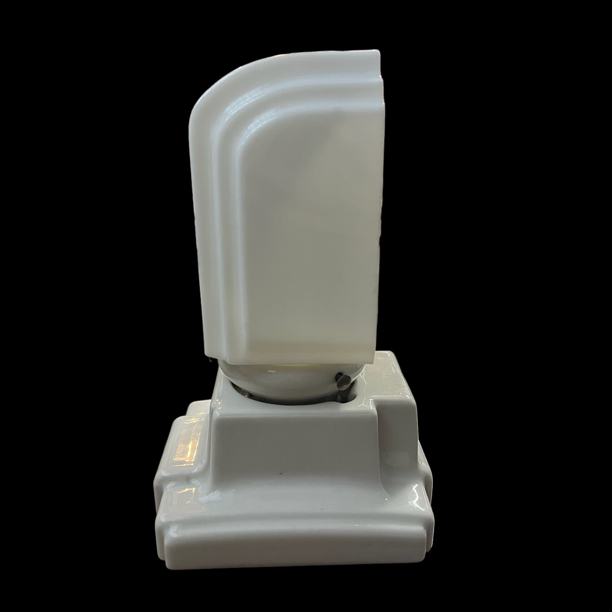 Transform your space into a haven of timeless elegance with our 1920-30s vintage Art Deco porcelain wall sconce. Adorned with a frosted milk glass shade, this antique masterpiece adds a touch of sophistication to any room. Illuminate your home in style and artistry.