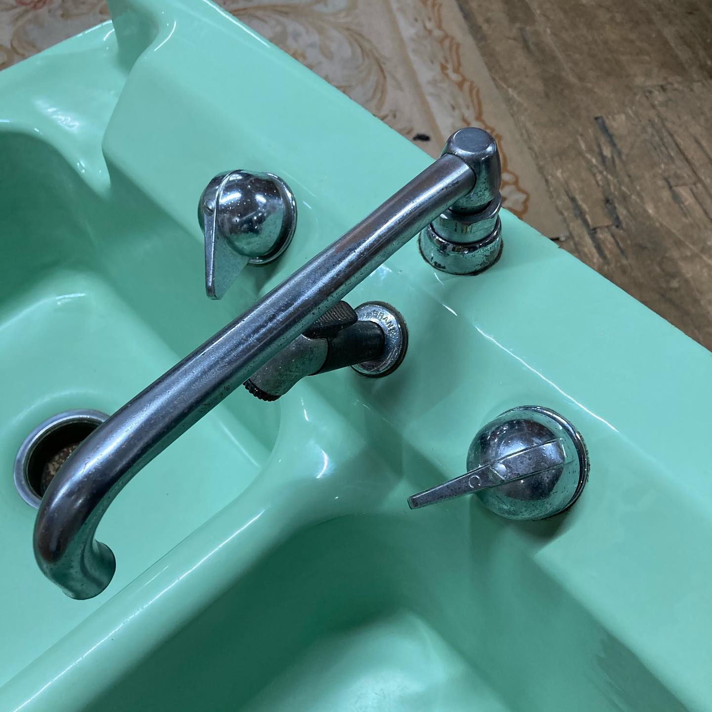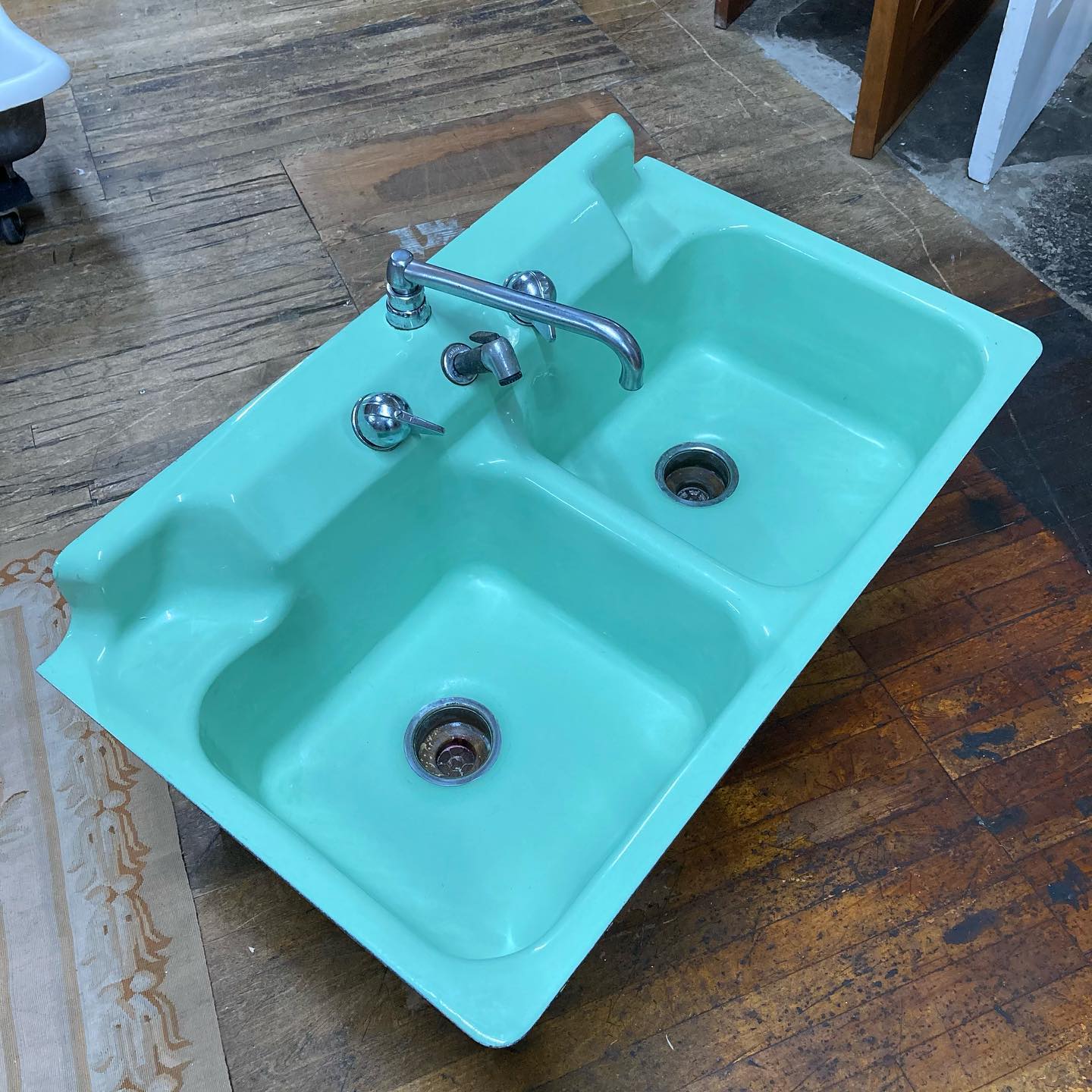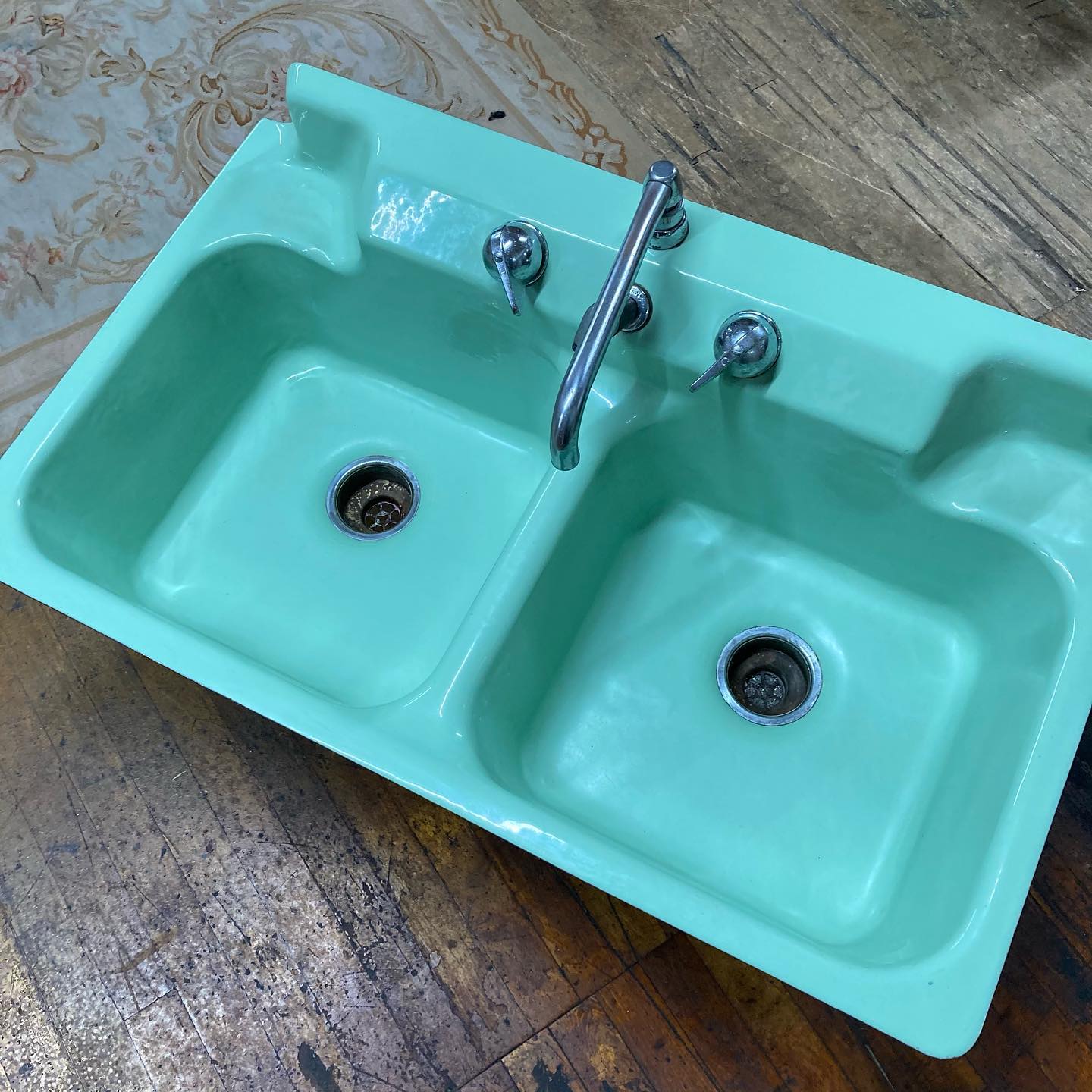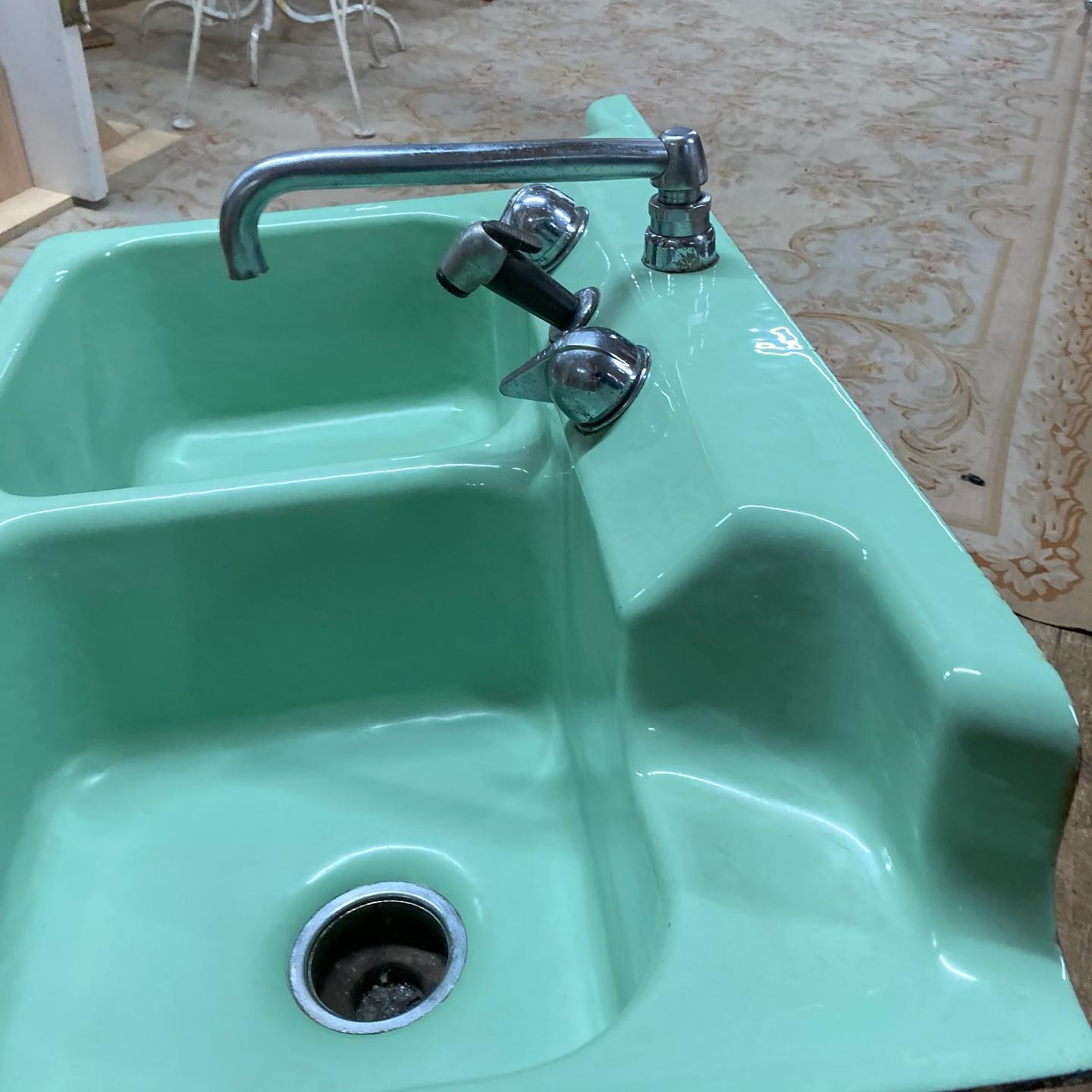 Rare early 1940’s Jade green Crane All American cast iron sink! This was salvaged from the former Tonne Dairy building in Fort Wayne, Indiana. Excellent statement piece in great original condition.