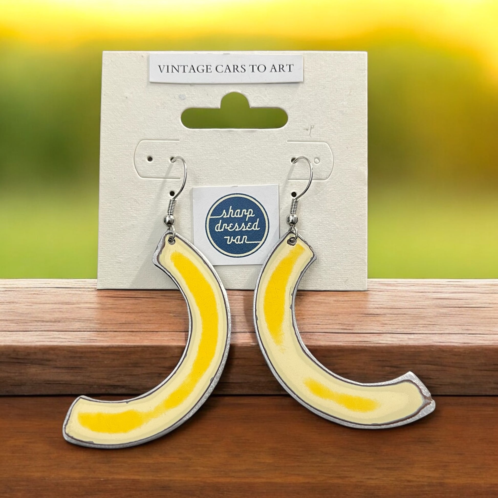Metal earrings hand-crafted out of vintage car metal - 1960s Dodge. Original paint/color.