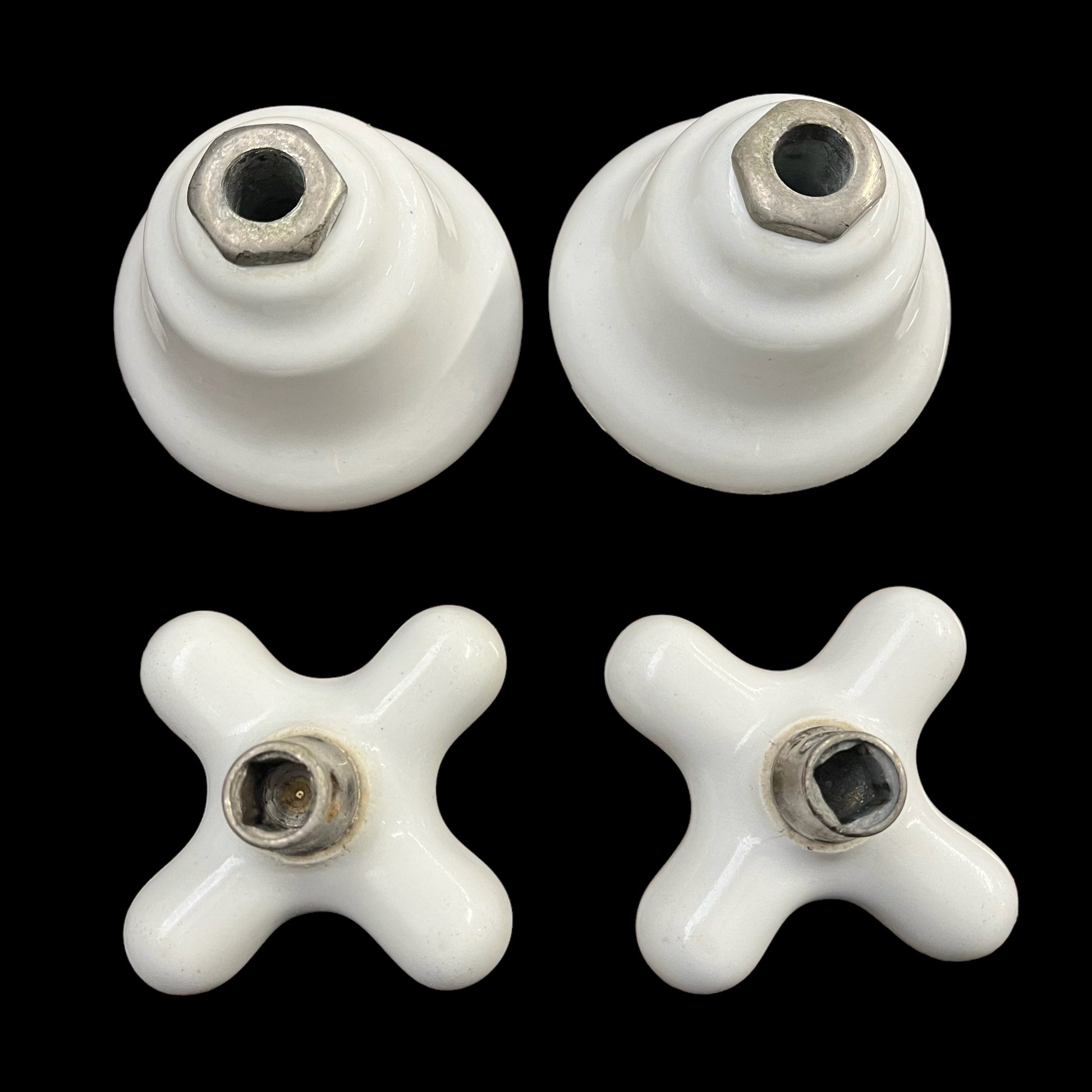 Antique (c. 1920) White Porcelain Hot/Cold Tub/Shower Faucet Knobs With Porcelain Escutcheons