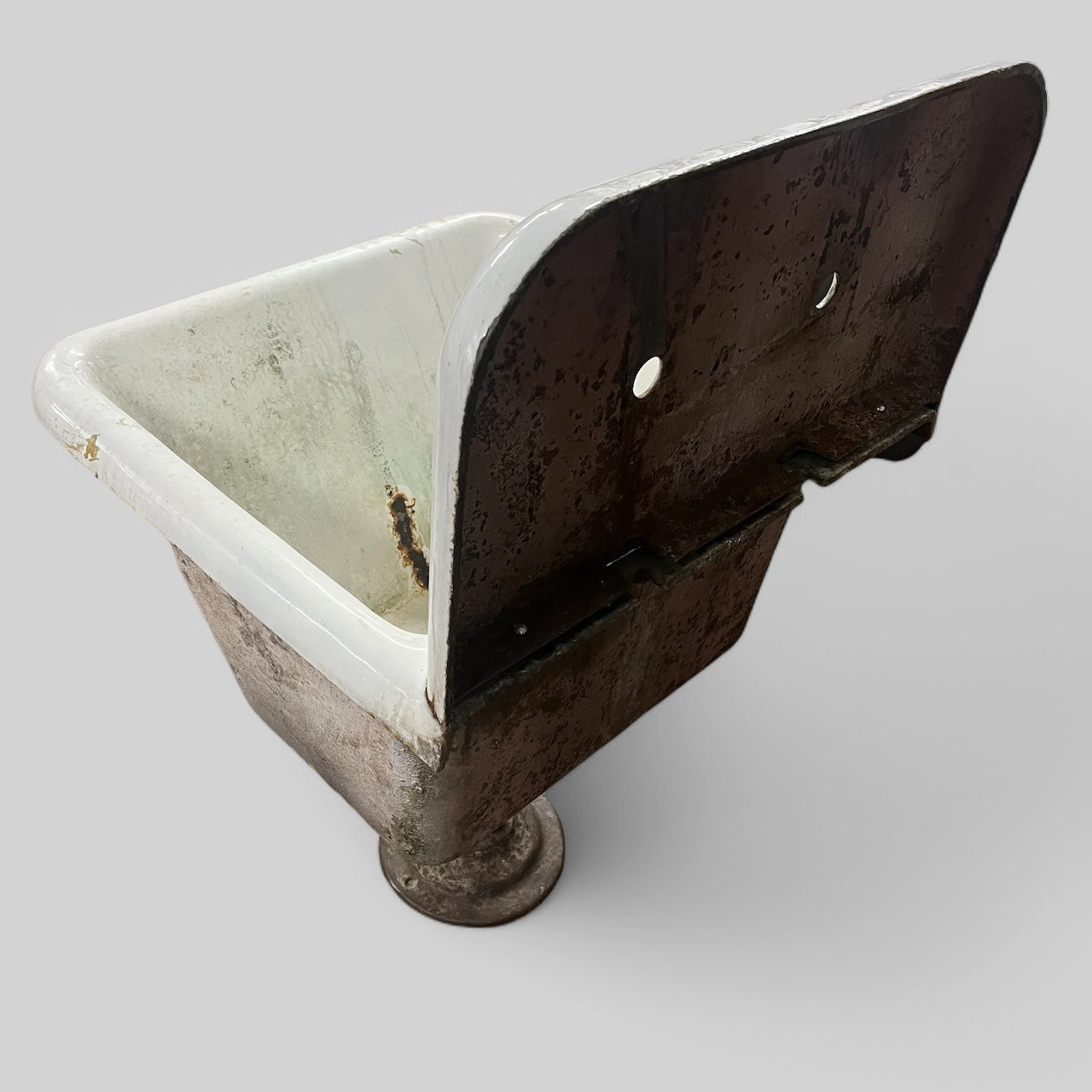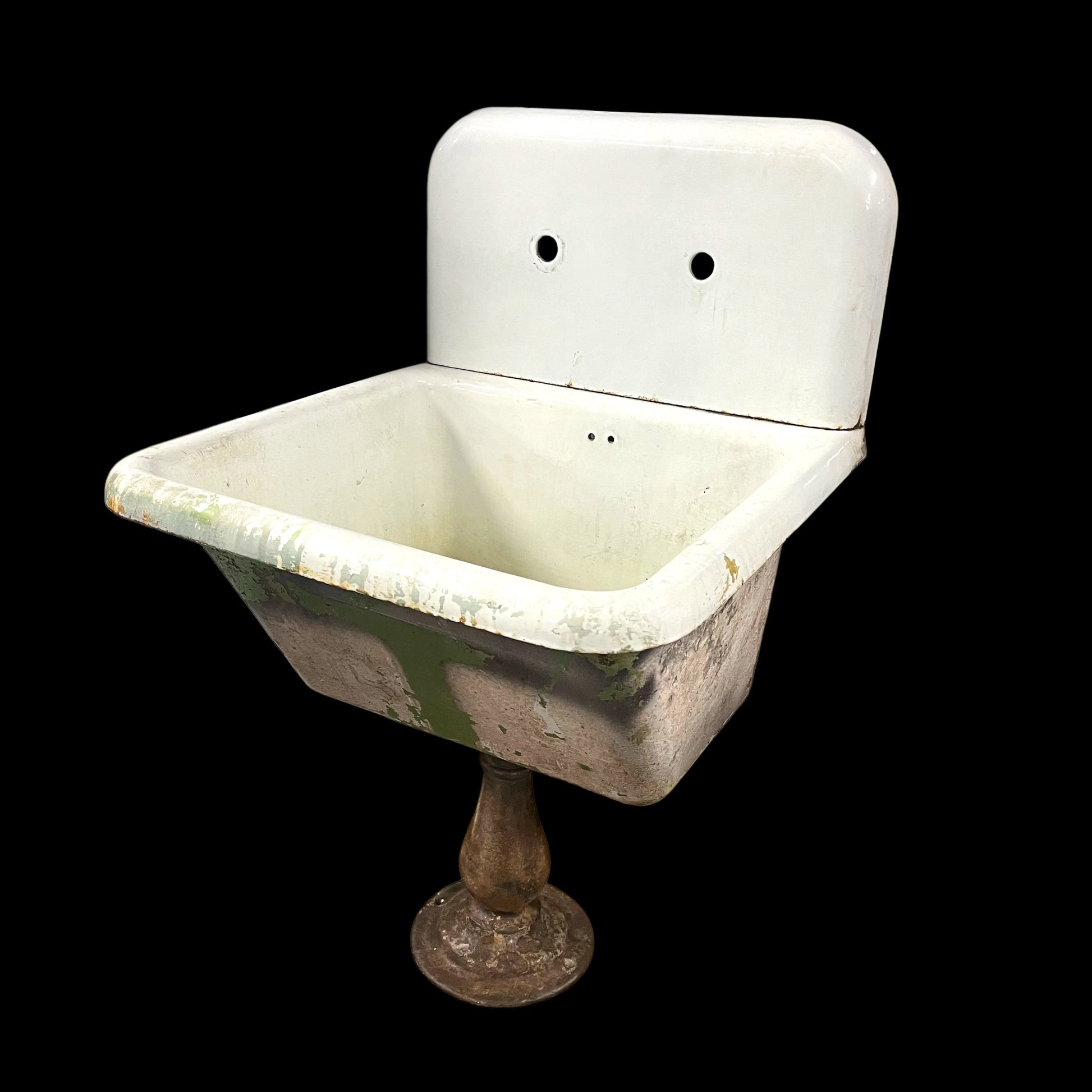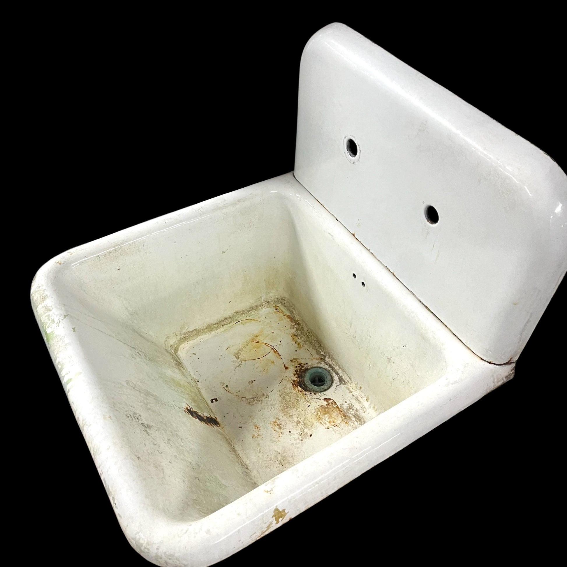 This sink came out of a Victorian era Italianate style house built in 1858. We’re unsure of the age of the sinks, but believe early 1900s. There is another one available in the back of our shop that hasn’t been cleaned up yet.