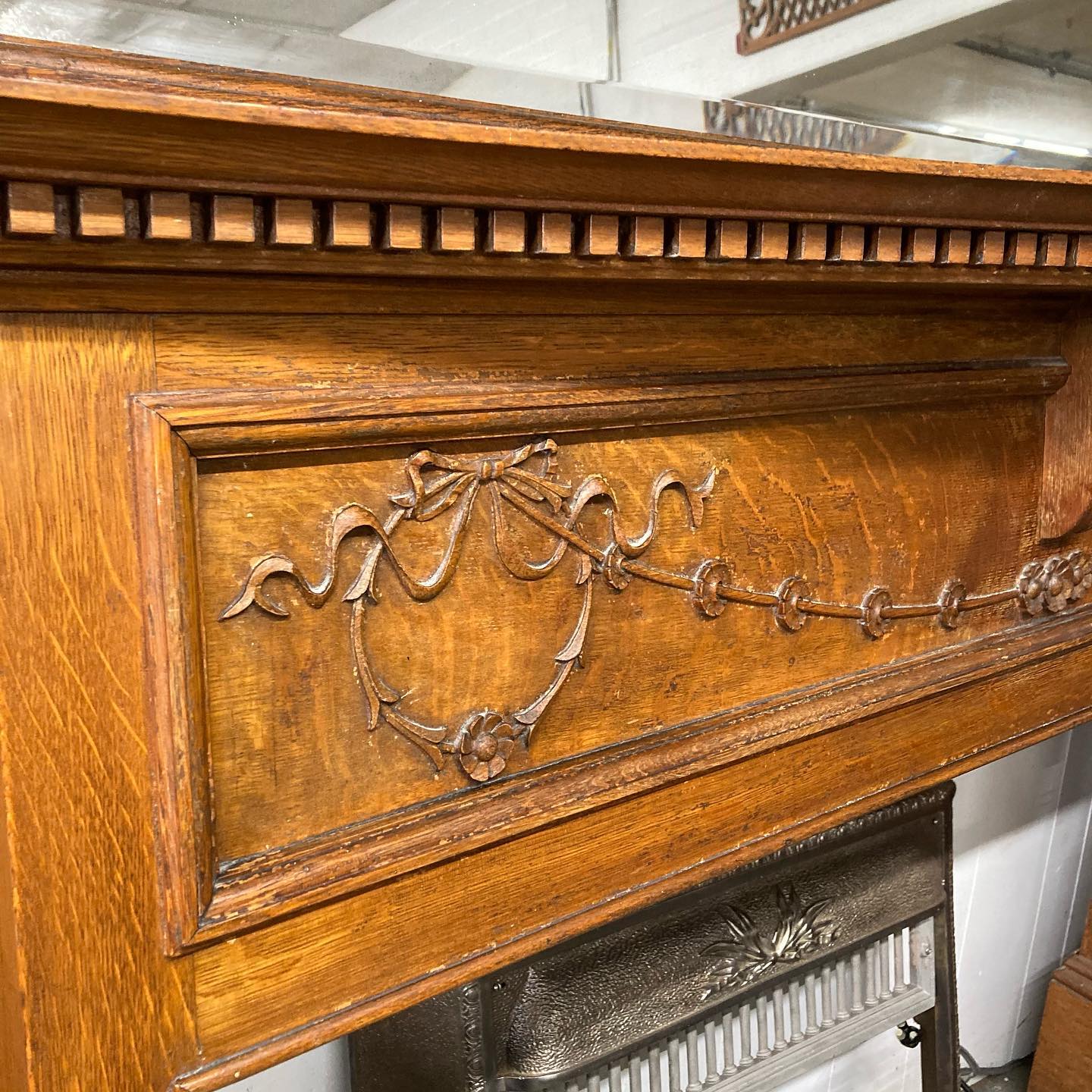 Antique Oak Fireplace Mantel/Surround with Beveled Mirror