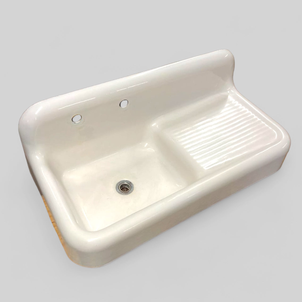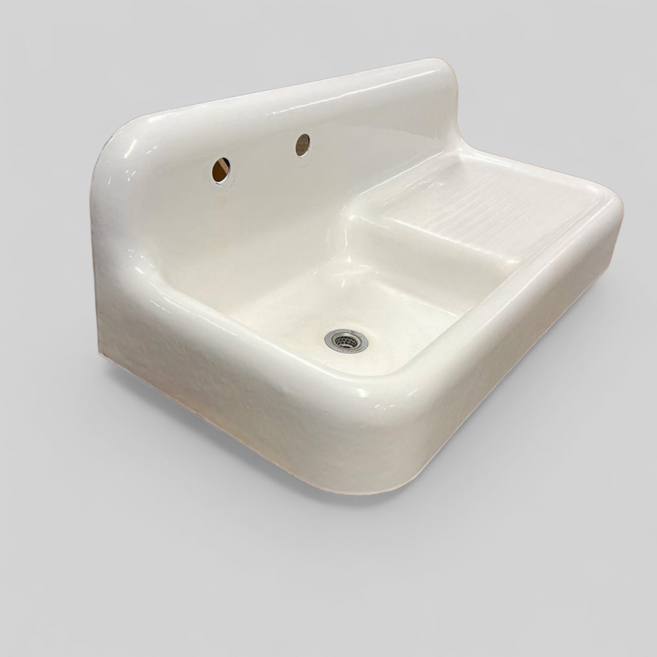 Antique Porcelain Enameled Cast Iron Farm Sink With Side Drain Board
