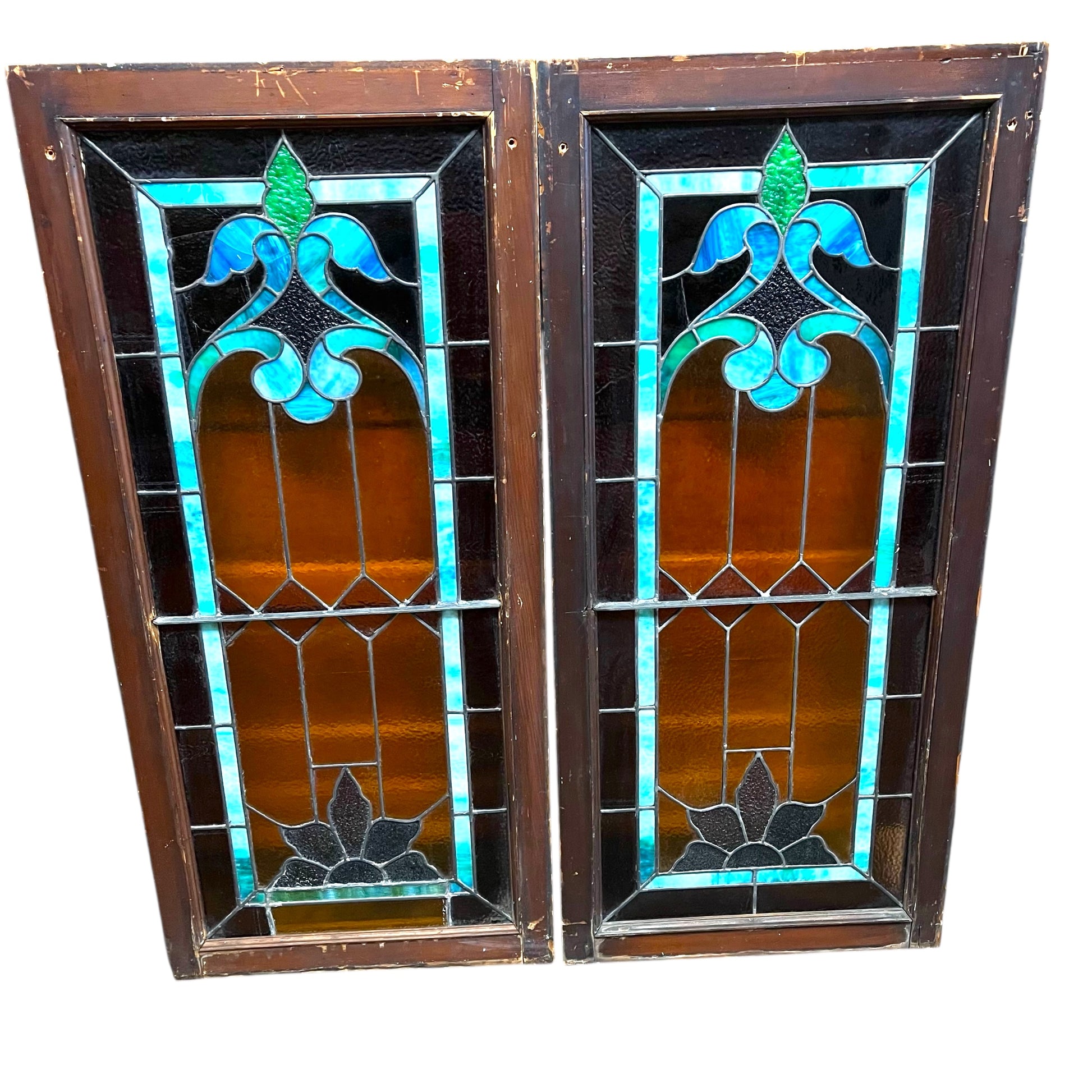 These pieces are getting harder to find! We have two superb antique stained glass windows which can be used in many different styles of houses. Very good condition considering their age.