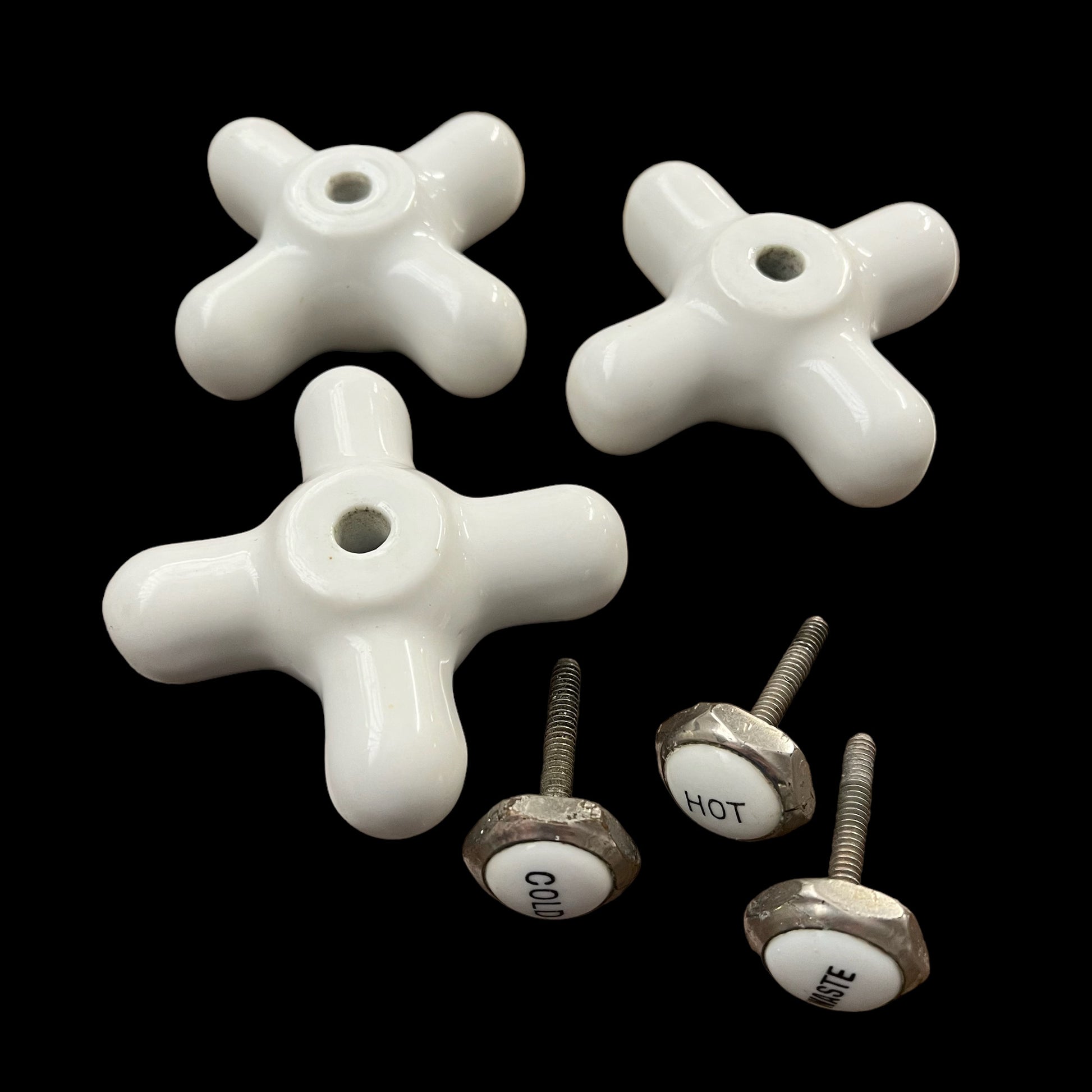 Antique white porcelain faucet knobs - HOT, COLD and WASTE