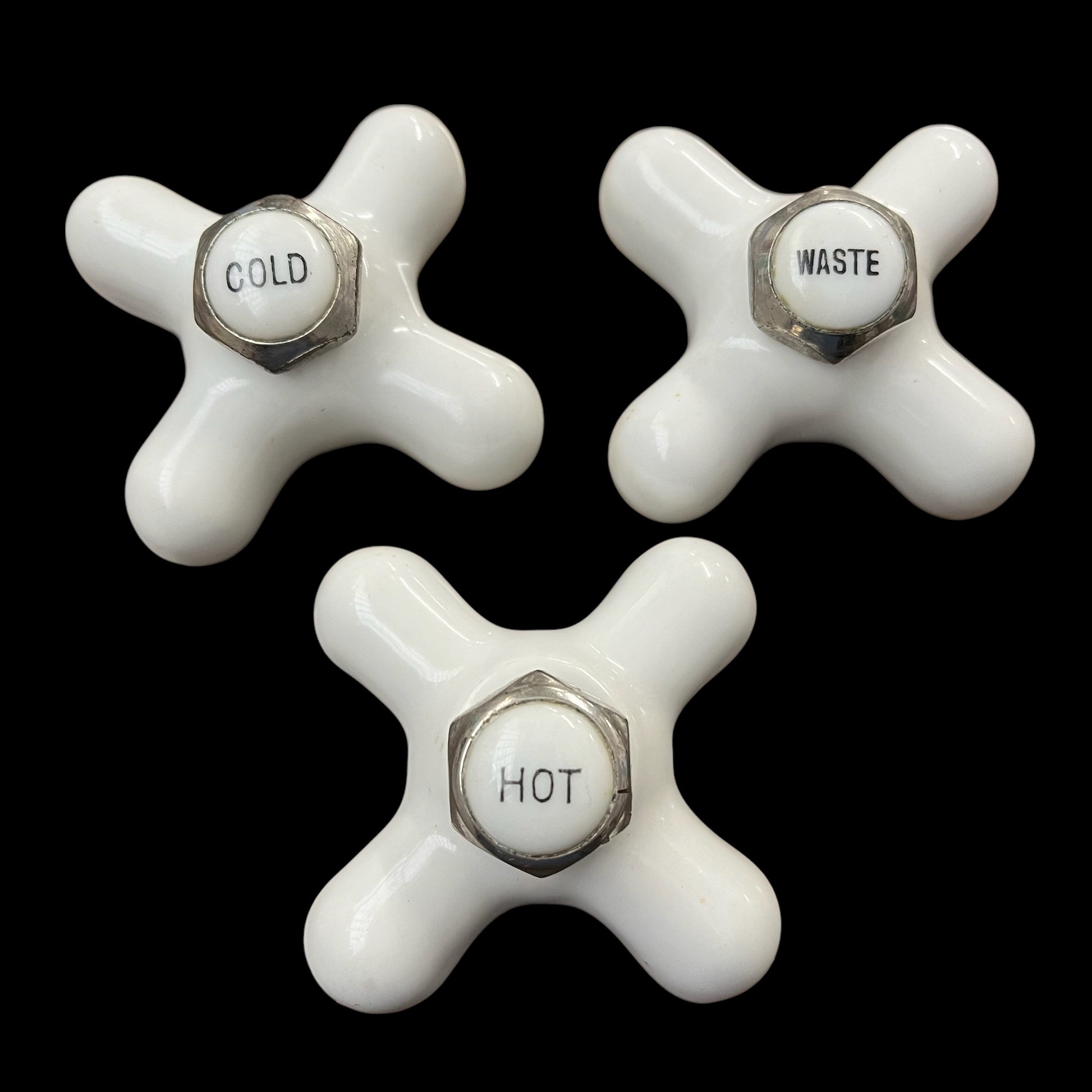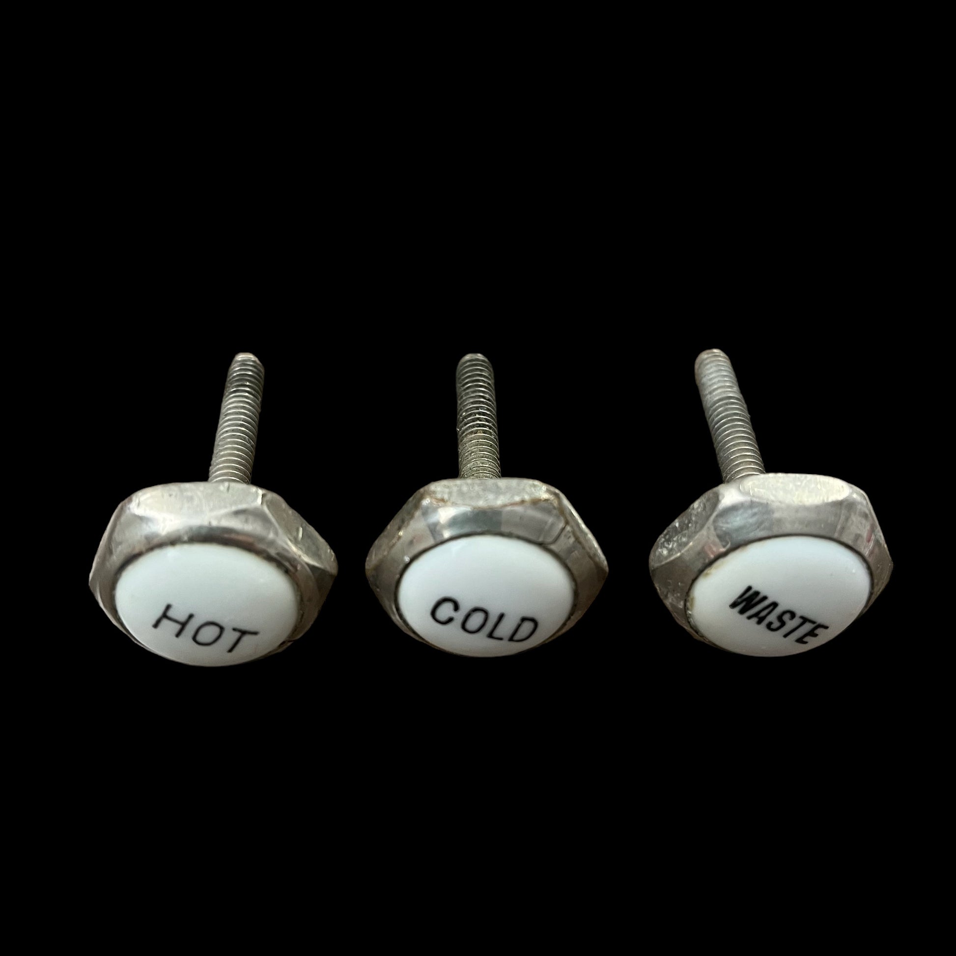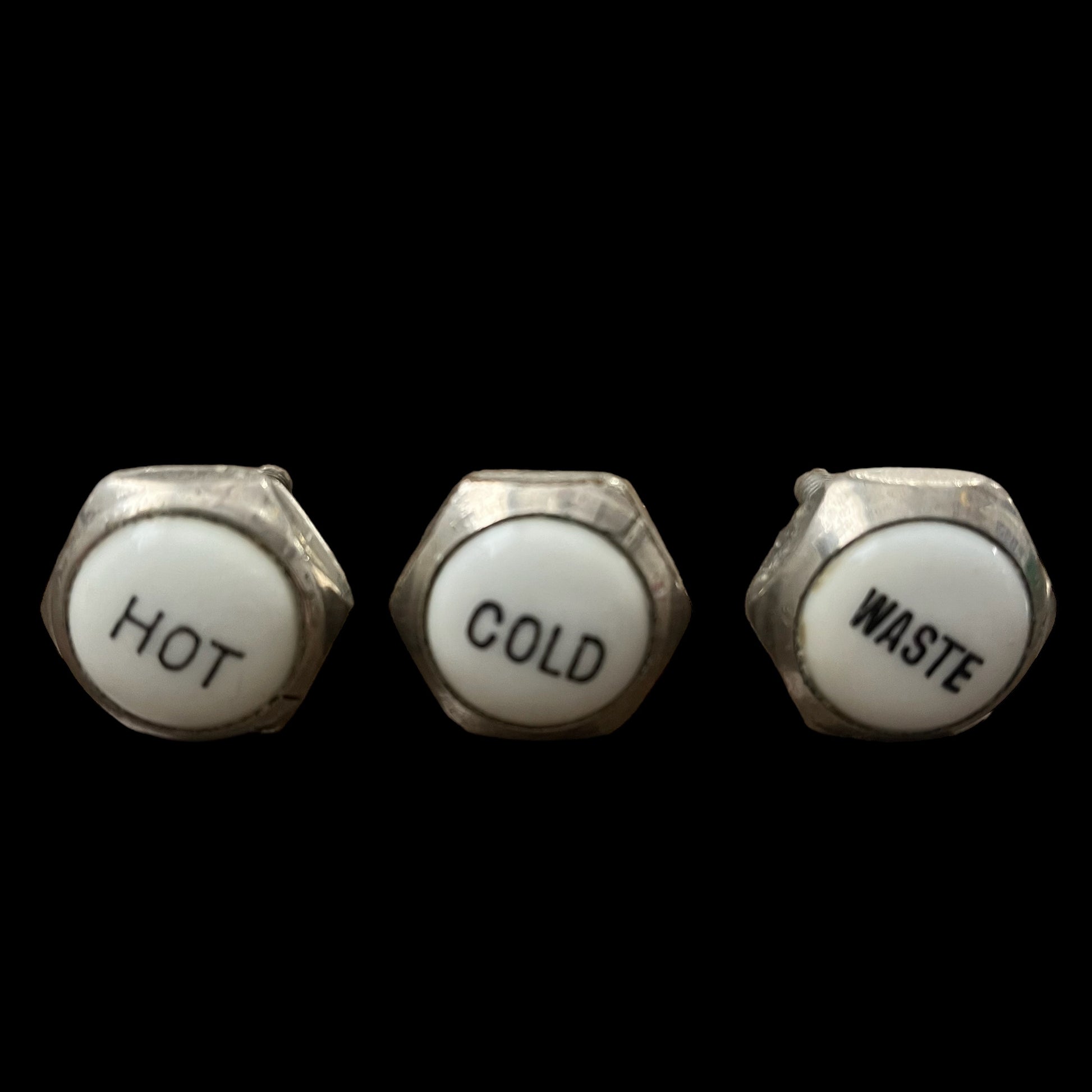 Antique White Porcelain HOT, COLD, WASTE Faucet Knobs