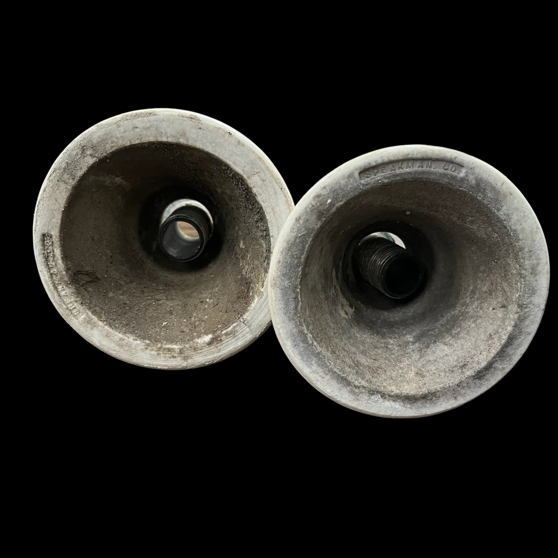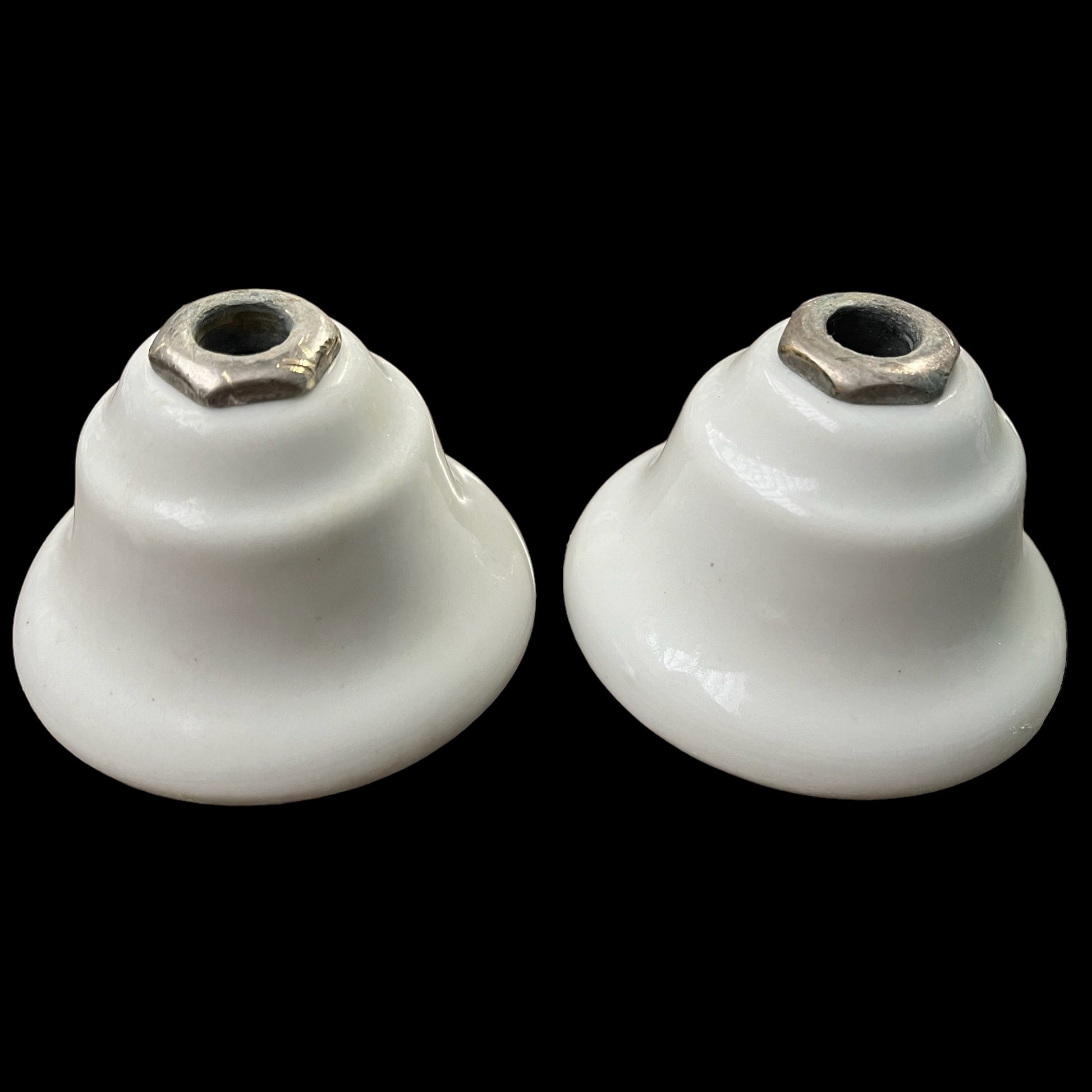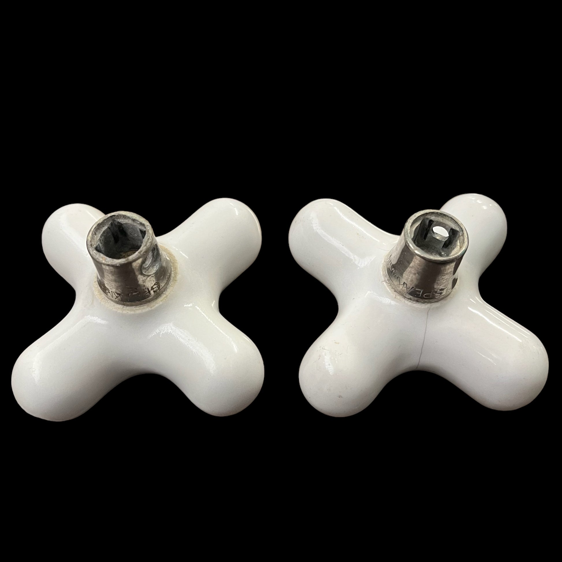 Antique (c. 1920) White Porcelain Hot/Cold Tub/Shower Faucet Knobs With Porcelain Escutcheons