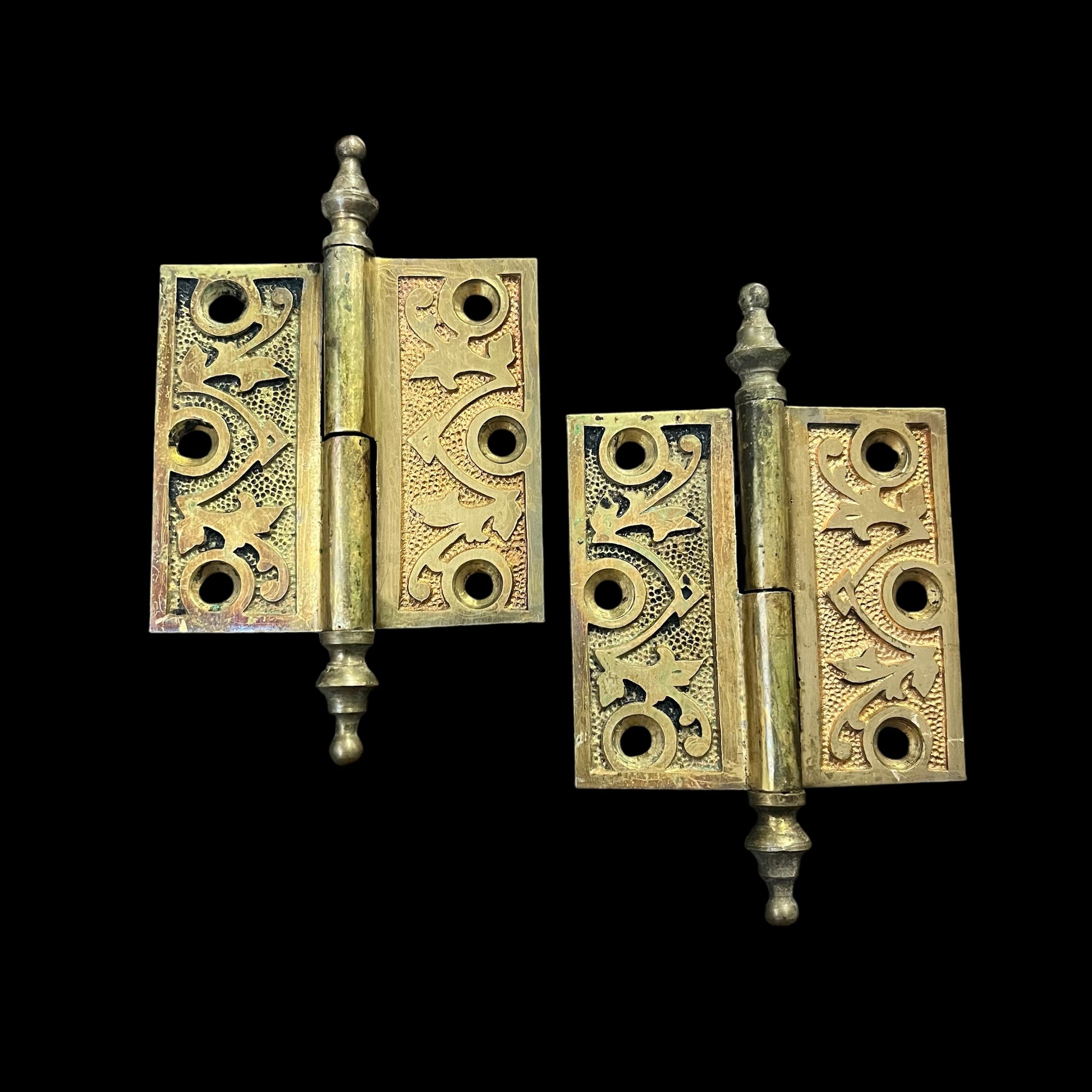 Gorgeous Antique Decorative Brass Steeple Tip Cabinet Hinges