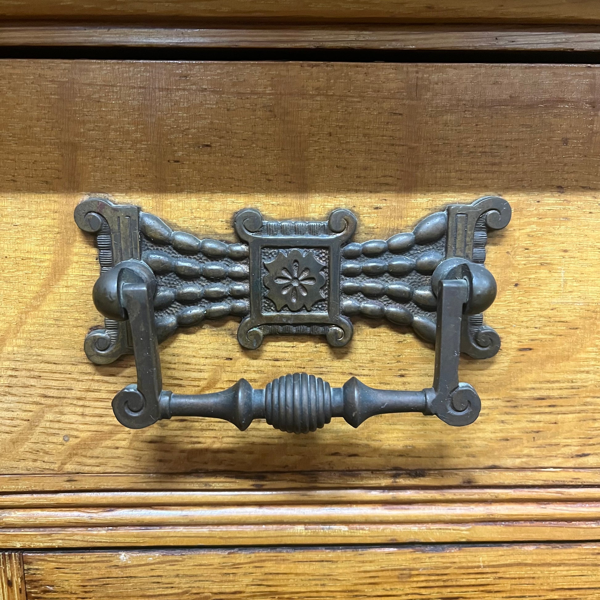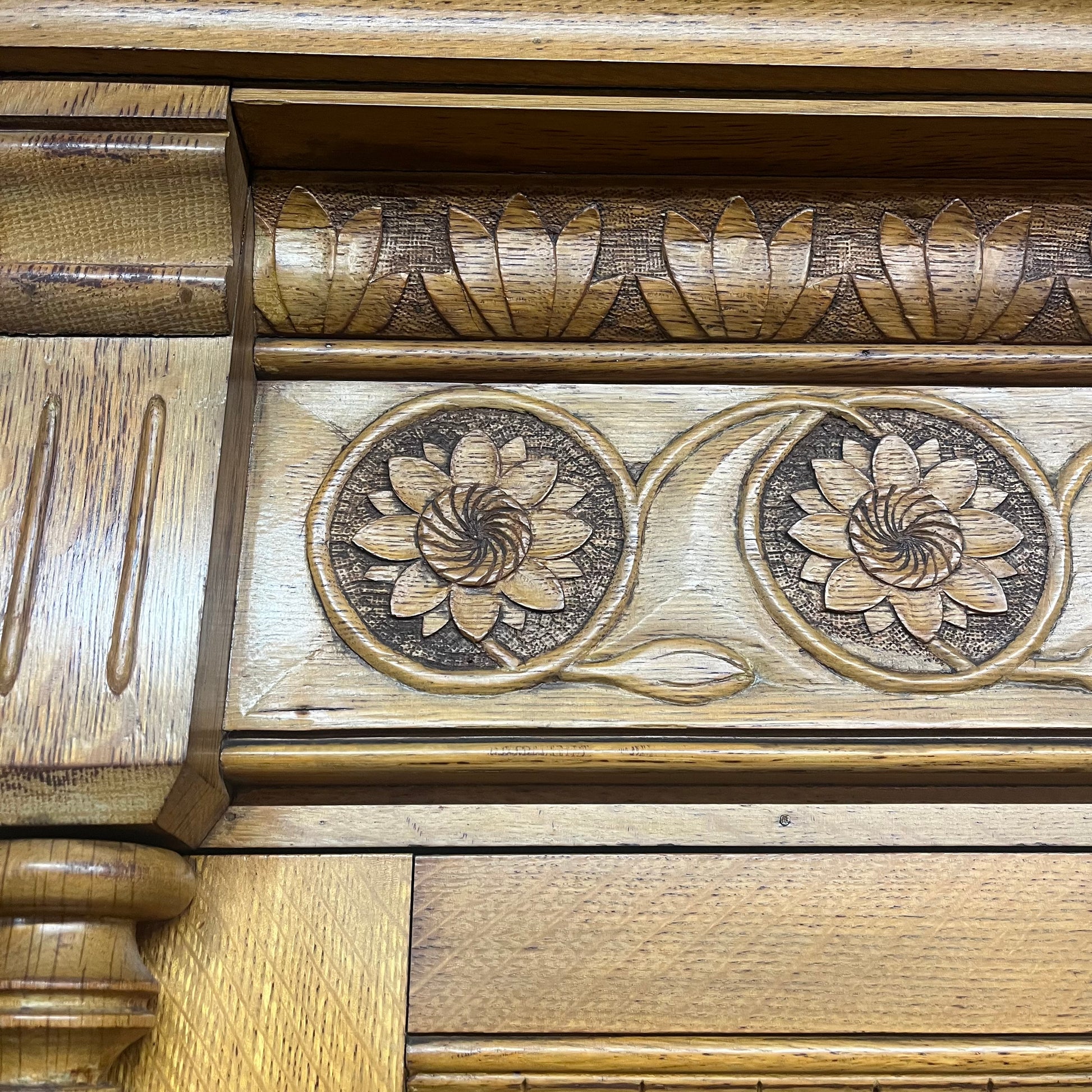 Hand-crafted/carved, oak, original wavy glass, HUGE built-in… enough said! This piece was salvaged from a Victorian era Italianate house built in 1858. It’s simply amazing and a one-of-a-kind piece!