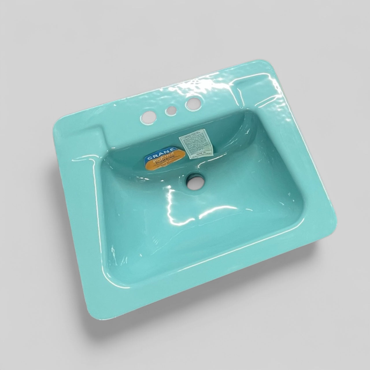 New old stock mid-century Crane cast iron sink - it’s a beautiful blue/green, maybe aqua blue color.