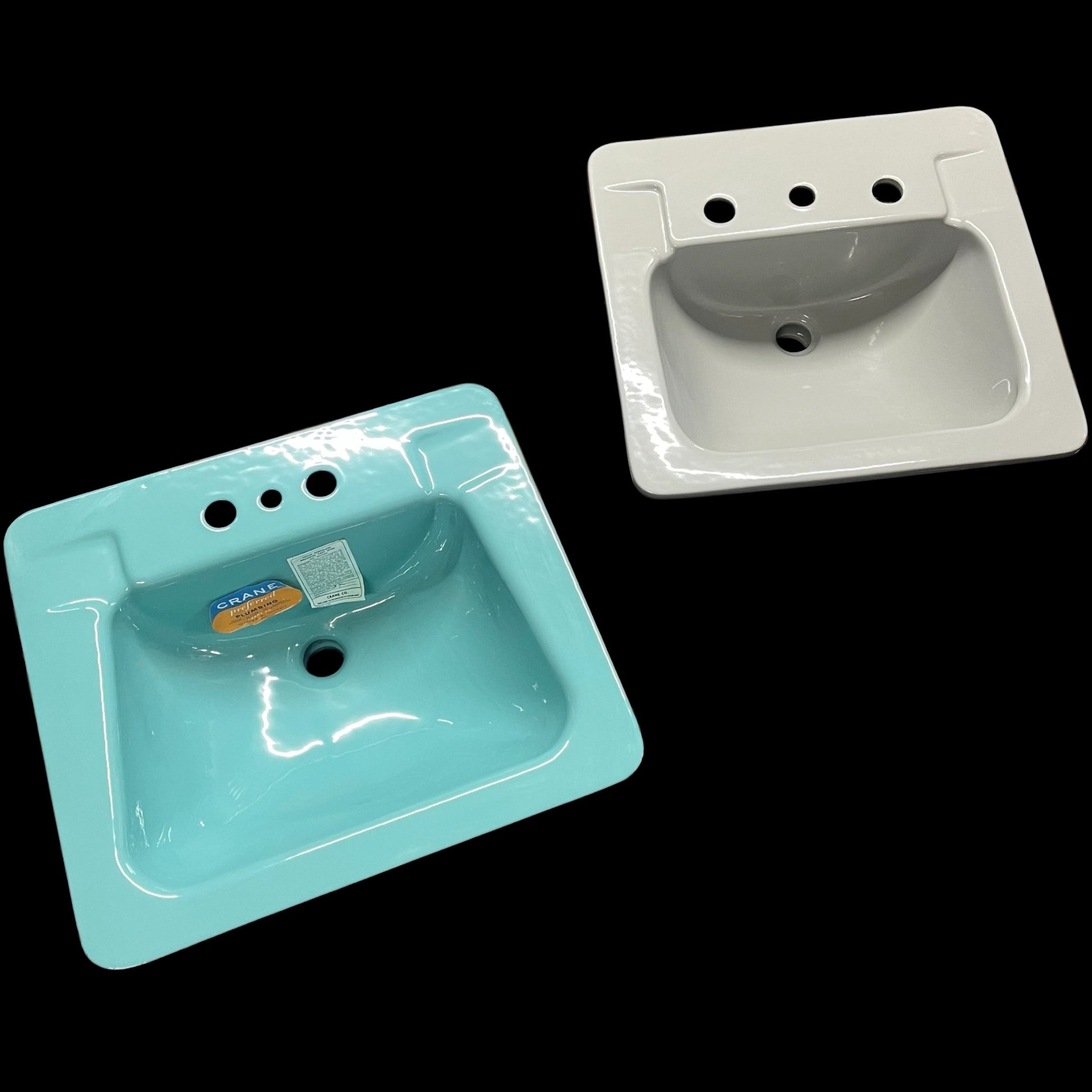 New Old Stock Mid-Century Crane Blue/Green Cast Iron Sink