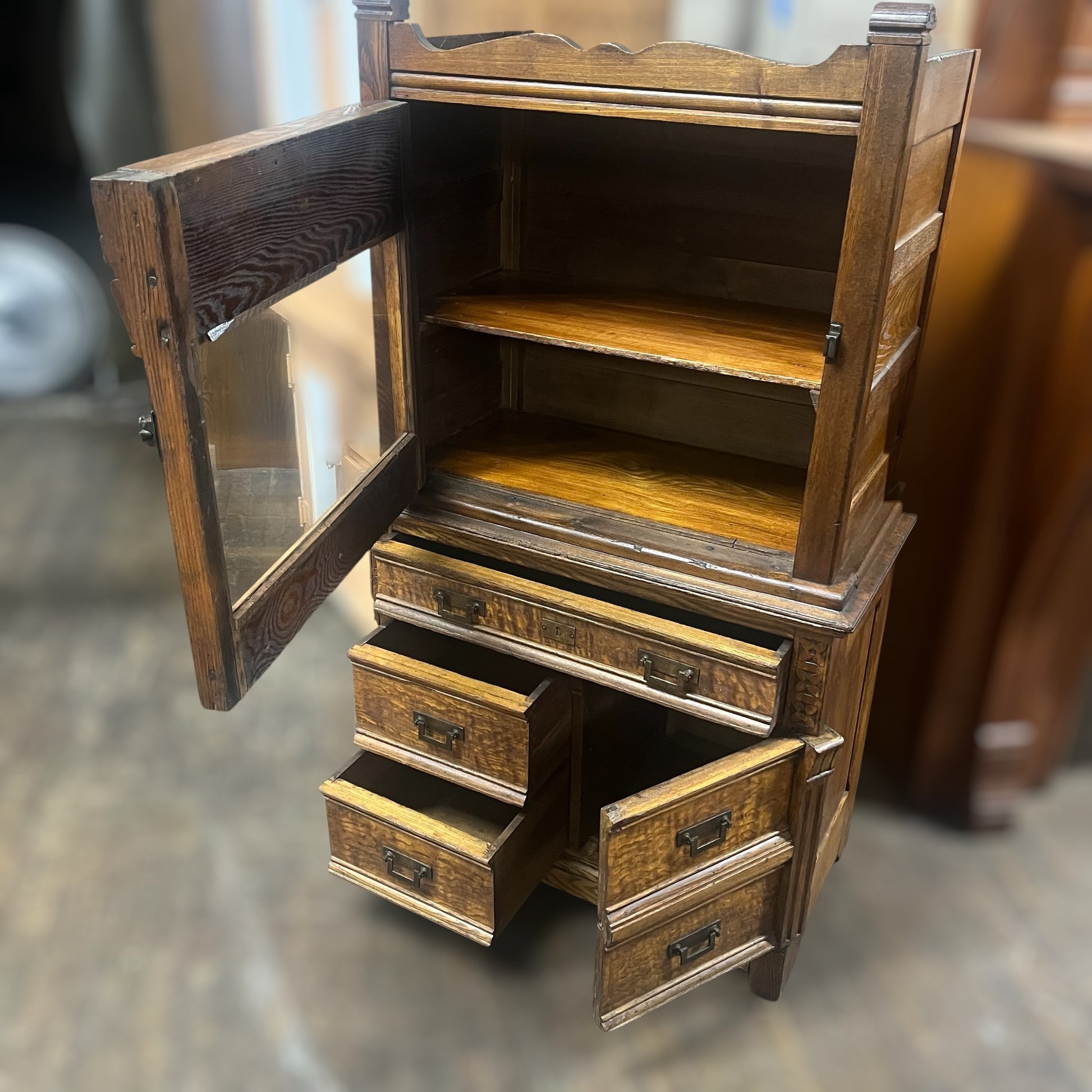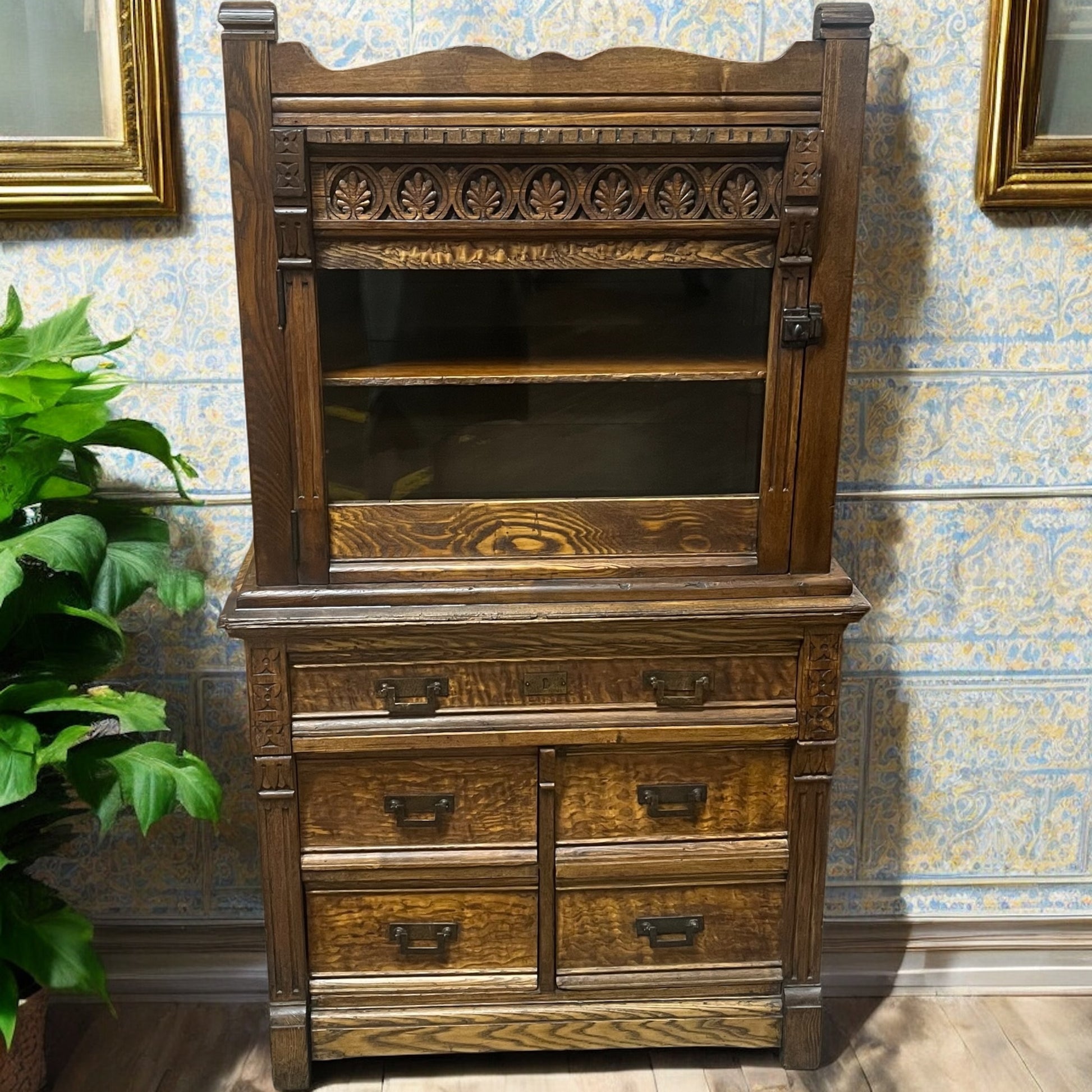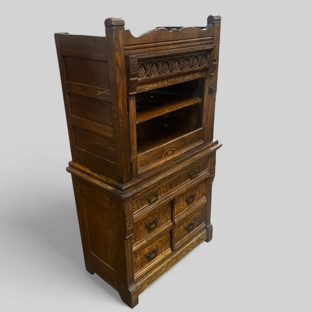 Ornate Antique Oak Doctor’s Cabinet