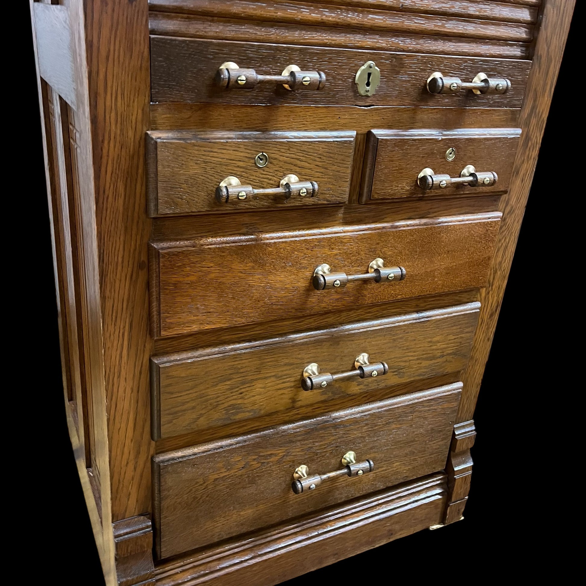 Step back in time with this stunning antique oak dental cabinet, believed to date from the late 19th to early 20th century. Crafted with remarkable attention to detail, this piece showcases timeless elegance and sturdy craftsmanship. A true beauty and an exceptional piece for collectors or vintage enthusiasts alike!