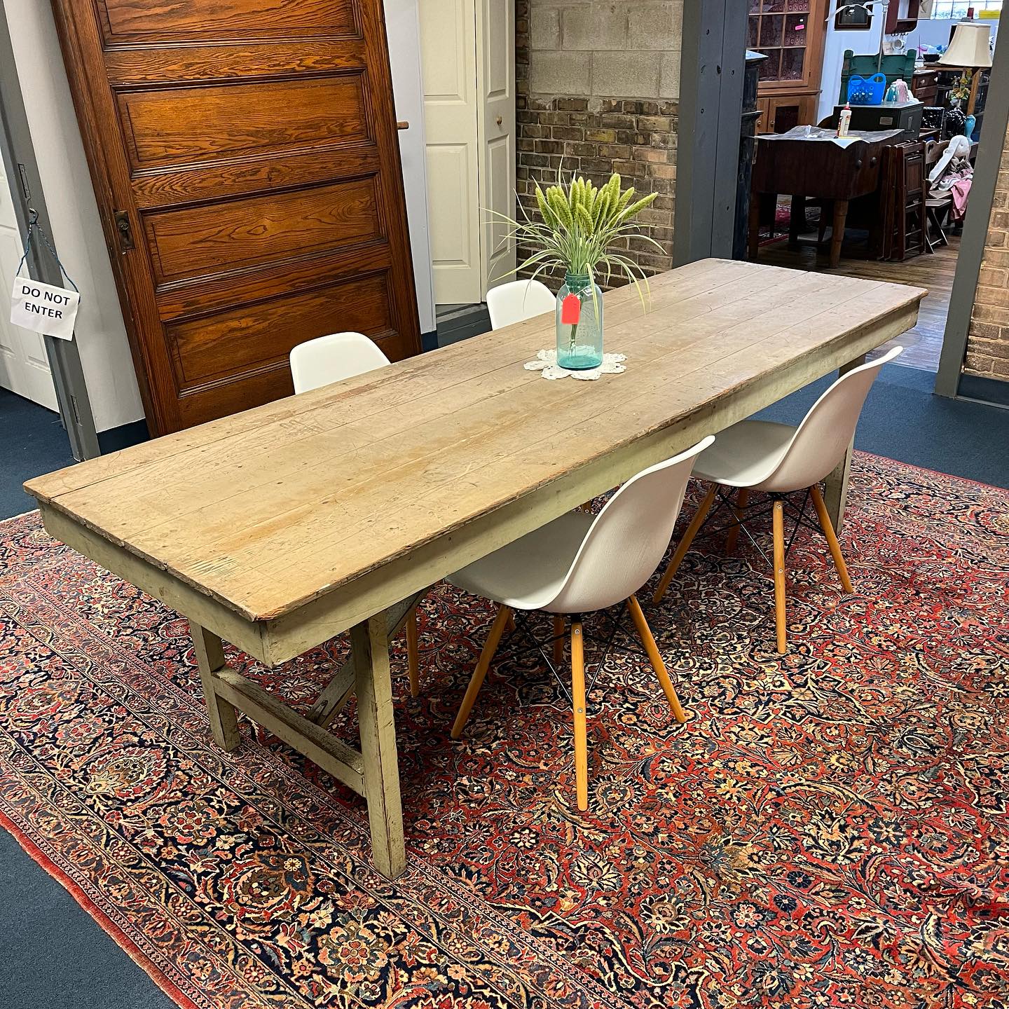 This rustic antique table is something special! It's got the perfect blend of rustic charm and classic style that will make any room look great. Plus, it's foldable for easy transport! 8 foot long and ready to make an impression - it's the antique table you've been waiting for!