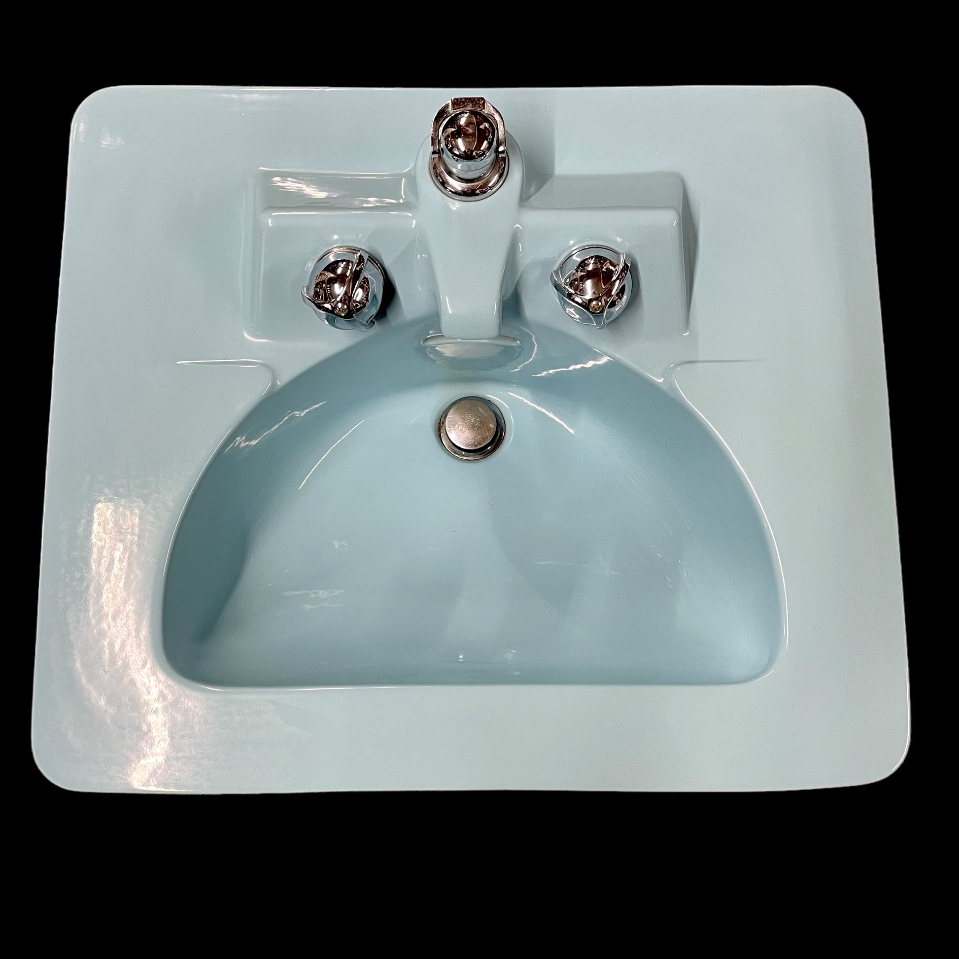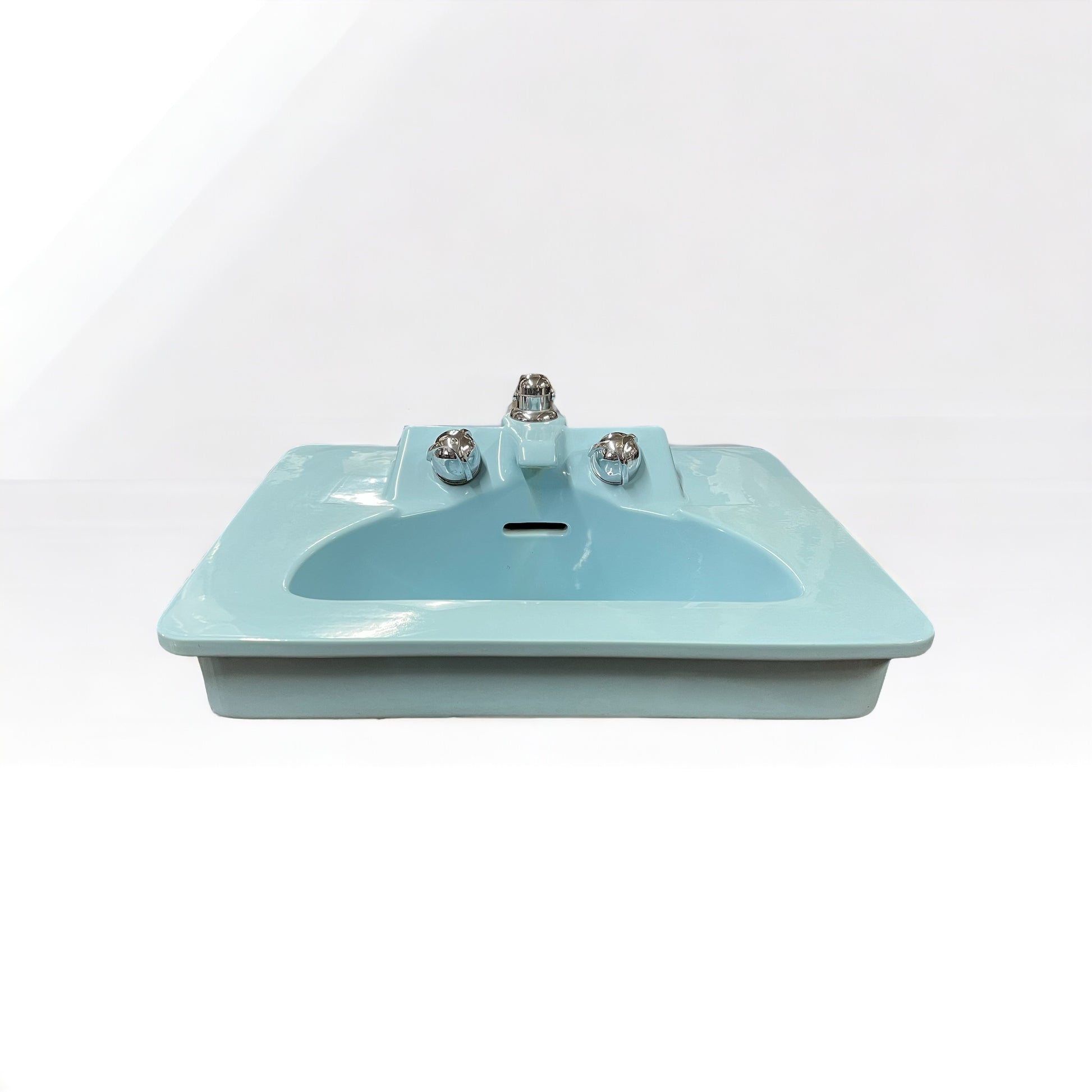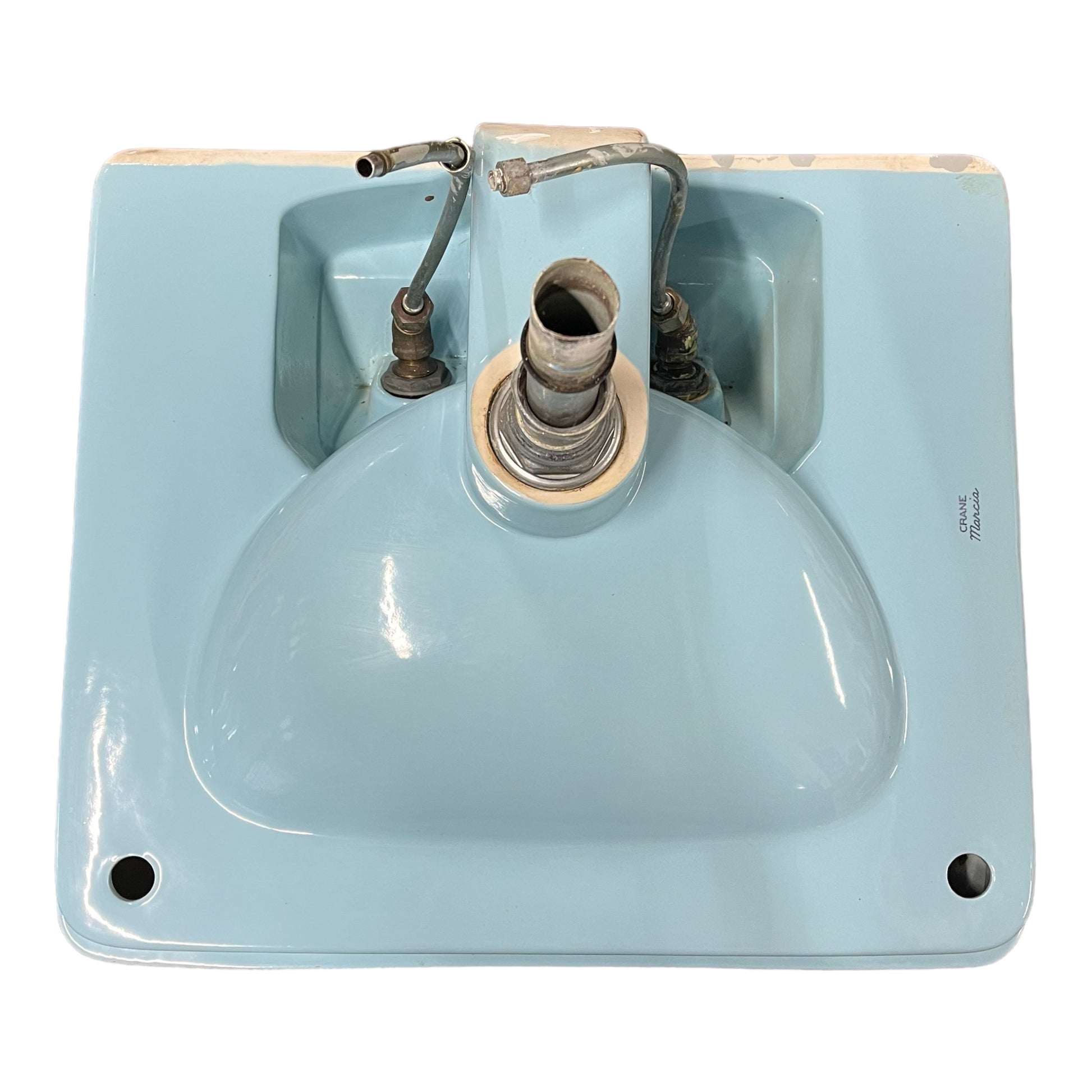 Add some vibrancy to your bathroom with this vintage baby blue Crane Marcia drop-in sink! You'll be feeling fancy in no time with this Mid-Century beauty that's ready for its moment in the spotlight. Hey there, cutie!