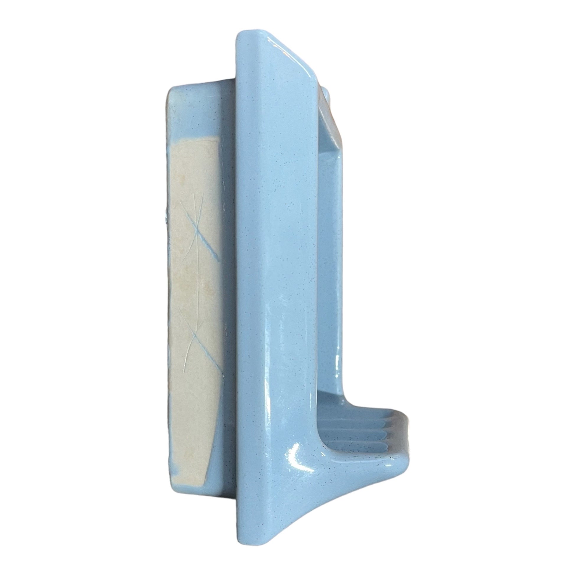 Vintage Blue Porcelain Tile-In Soap Dish With Ridges