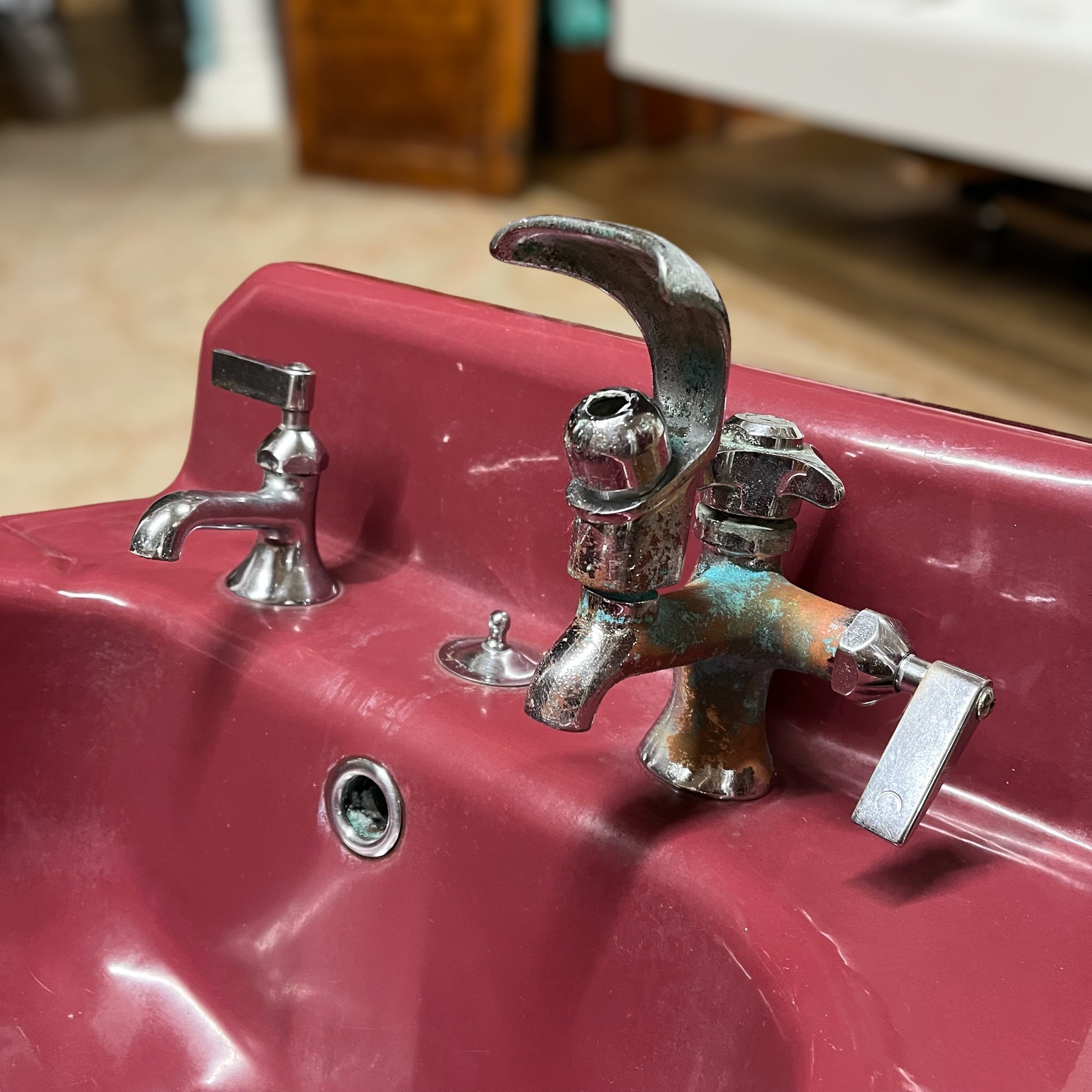 Vintage Mid-Century "Kohler" Burgundy Red Porcelain Enameled Cast Iron Wall Mount Sink