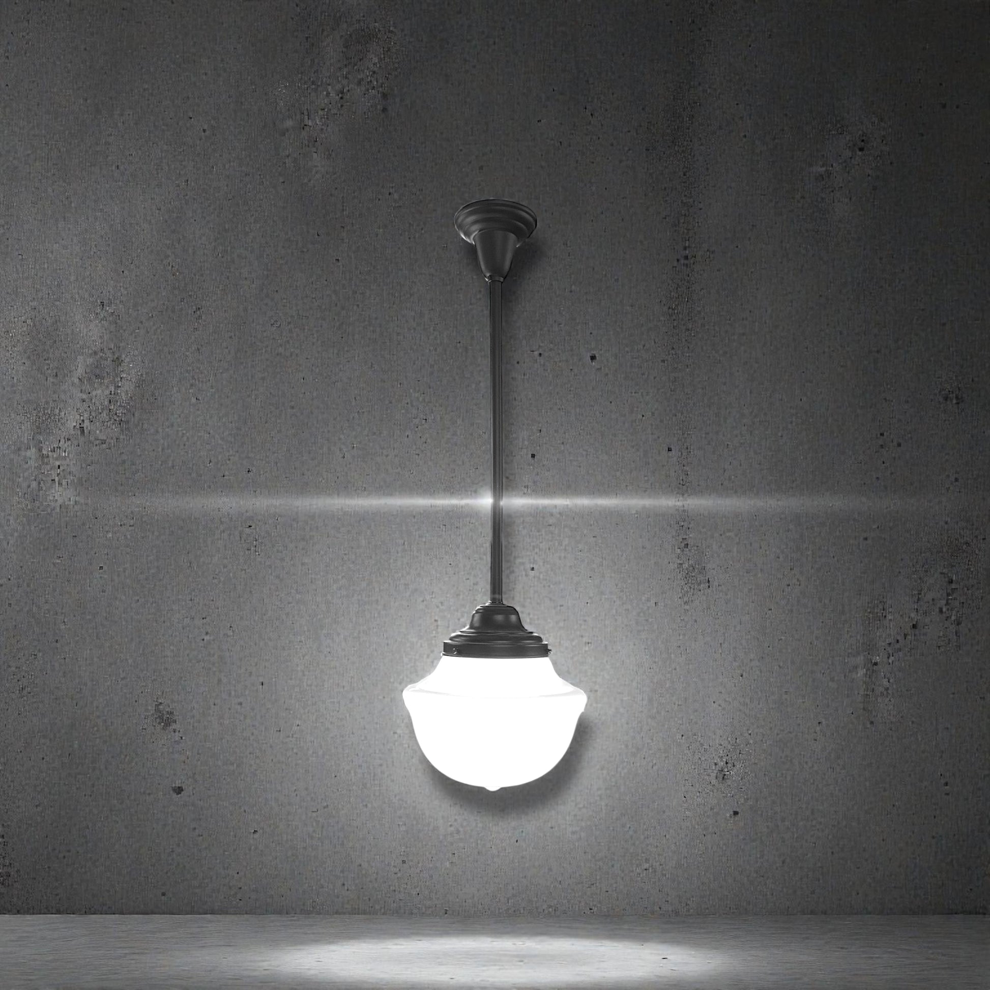 Here is a fantastic vintage schoolhouse globe with brass fitter, pole and canopy. Excellent condition from the early 20th century.