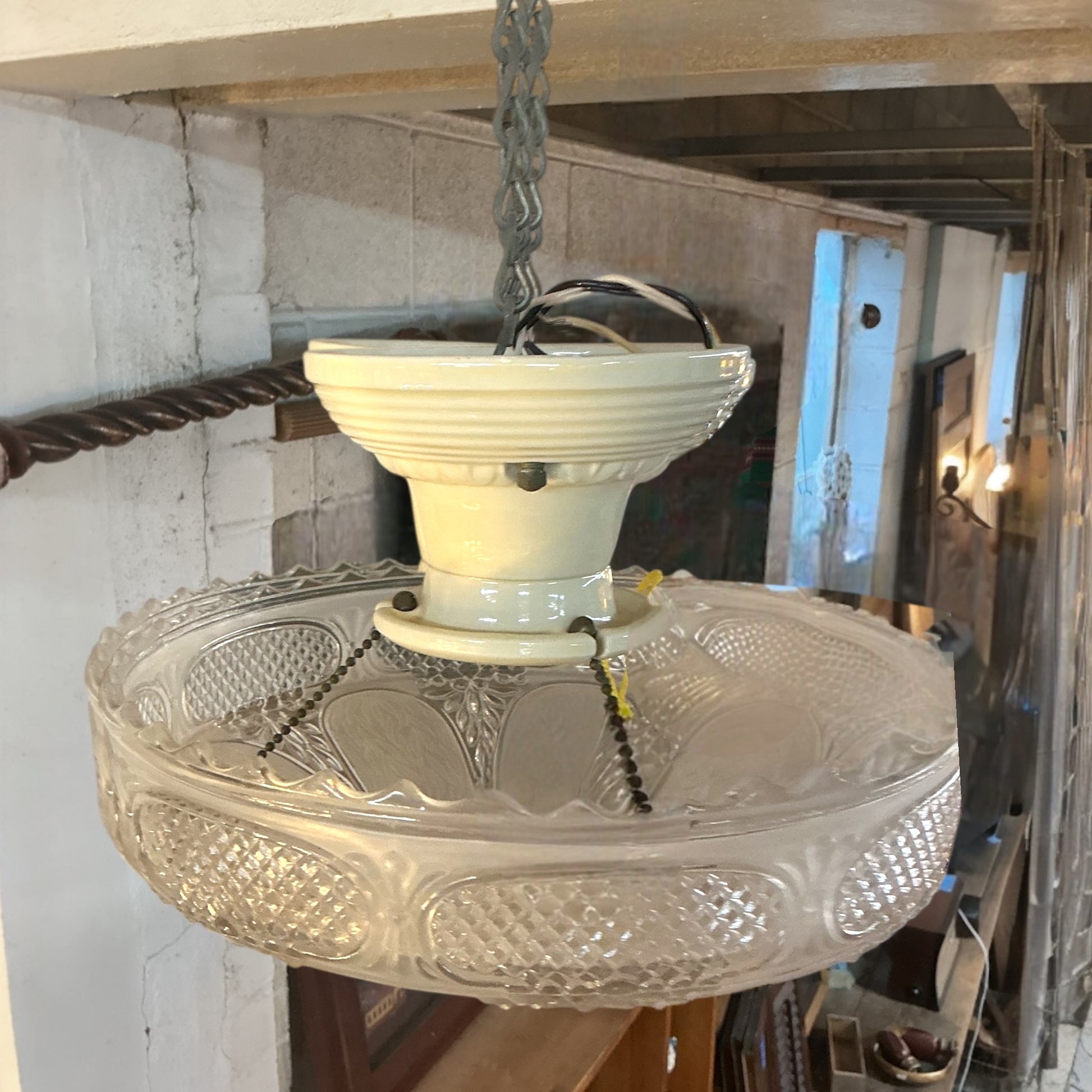 A great three-chain ceiling fixture with original textured shade. Rewired.